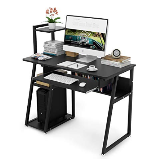 パソコンデスク 机 100cm 省スペース 収納ラック付 キーボードスライダー付 DEWEL ワークデスク PCデスク モニターアーム取付対応 ゲーミングデスク アジャスター付 総耐荷重100kg 組立簡単 勉強机 学習机 テレワーク