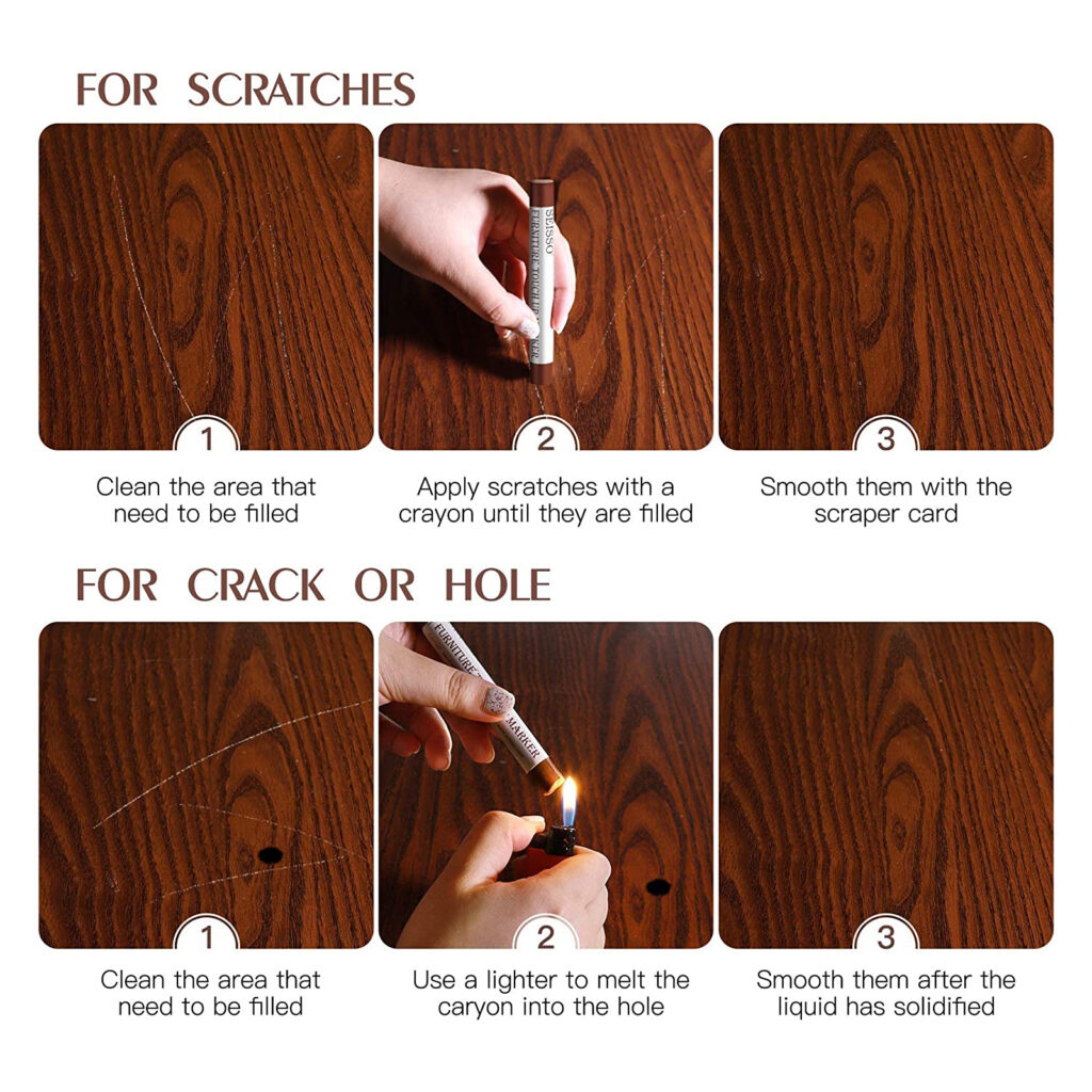 Wide Range of Uses: It has both markers and crayon type filler, very easy to fill the scratch, discoloration, hole or separation gaps, it’s a great ideal for any kind of wooden furniture.